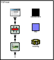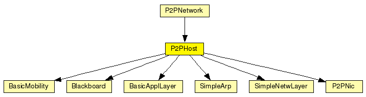 The P2PHost is a compound module that implements a very simple peer to peer host. Instead of an "snrEval" and "decider" module it just contains a simple "phy" module that sends unicast messages